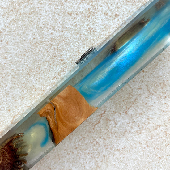 Uncover the profound origins of our handmade mezuzah, a profound portrayal of commitment and ingenuity. The fusion of Israeli Olive Wood, forest acorn and blue epoxy resin results in a resilient tribute to Jewish convictions, exuding refinement and might. The complex "Shin" in precious metal imparts a sense of grace to this mezuzah, elevating it to both a spiritual guardian and a beautiful ornament for any Jewish home.